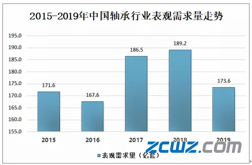 未來市場對軸承產(chǎn)品的質(zhì)量要求將會(huì)越來越高,用戶將會(huì)更加注重產(chǎn)品的過程控制,注重產(chǎn)品全生命周期的質(zhì)量與服務(wù)。2019年中國軸承行業(yè)表觀需求需求量為173.6億套,同比下降8.2%。